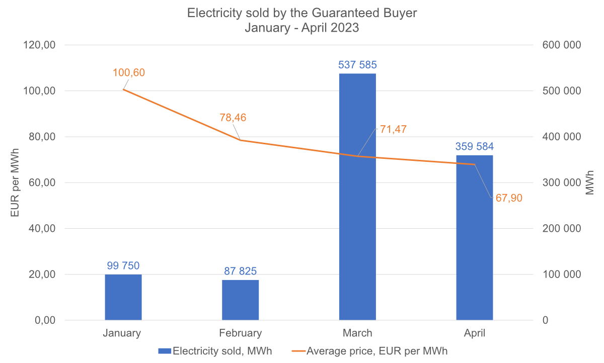 Volumes of electricity sold at the “green” auctions in March and April increased in comparison to January and February